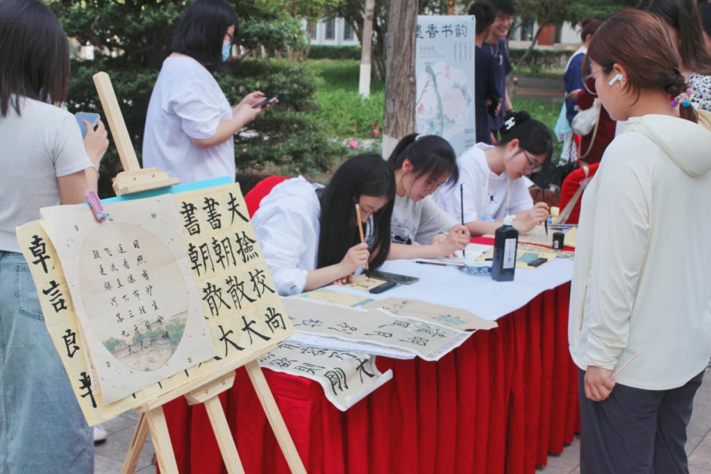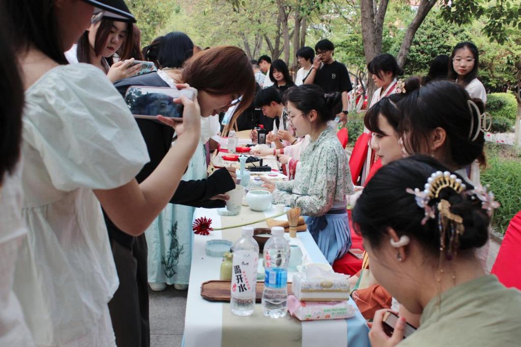 开幕式结束后,各驻泰高校同十二花神巡游到传统文化体验区,近距离感受中华优秀传统文化的独特之美。游园会精心设置了花艺、投壶、品茶、拓印、传统木射、书法、多彩扎染、手工剪纸等二十余个中华优秀传统文化活动体验区,同时还设置了汉服体验馆、非遗文化体验馆,让参与者可以尽情感受中华优秀传统文化的魅力。