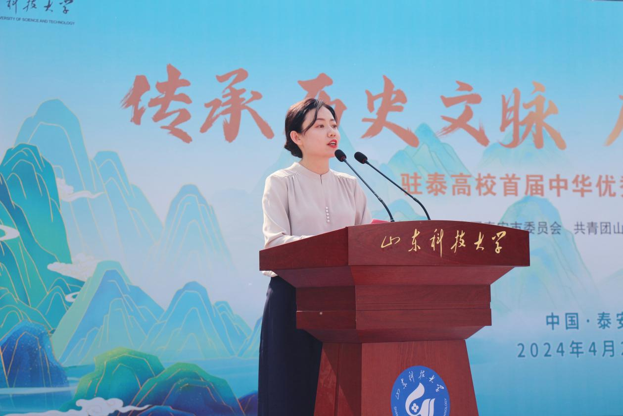 开幕式上,共青团泰安市委书记刘荣星致辞,bv伟德国际体育党委常务副书记吴正龙致欢迎词。bv伟德国际体育、山东农业大学、山东第一医科大学、泰山学院、山东财经大学东方学院、泰山职业技术学院、泰山护理职业学院、山东服装职业学院等驻泰高校学生代表依次进行中华传统文化才艺展演,来自摩洛哥的bv伟德国际体育留学生也带来了精彩的舞蹈表演。