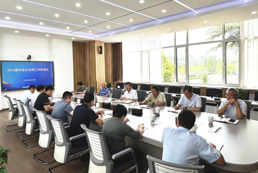 会议传达了《2024届毕业生后期工作日程安排》和《2024届毕业生后期工作各单位分工》,明确了毕业生后期各部门工作任务和工作要求。戴东宝要求各部门、各单位要相互配合、密切协作,提升毕业生各项工作的质量和实效。