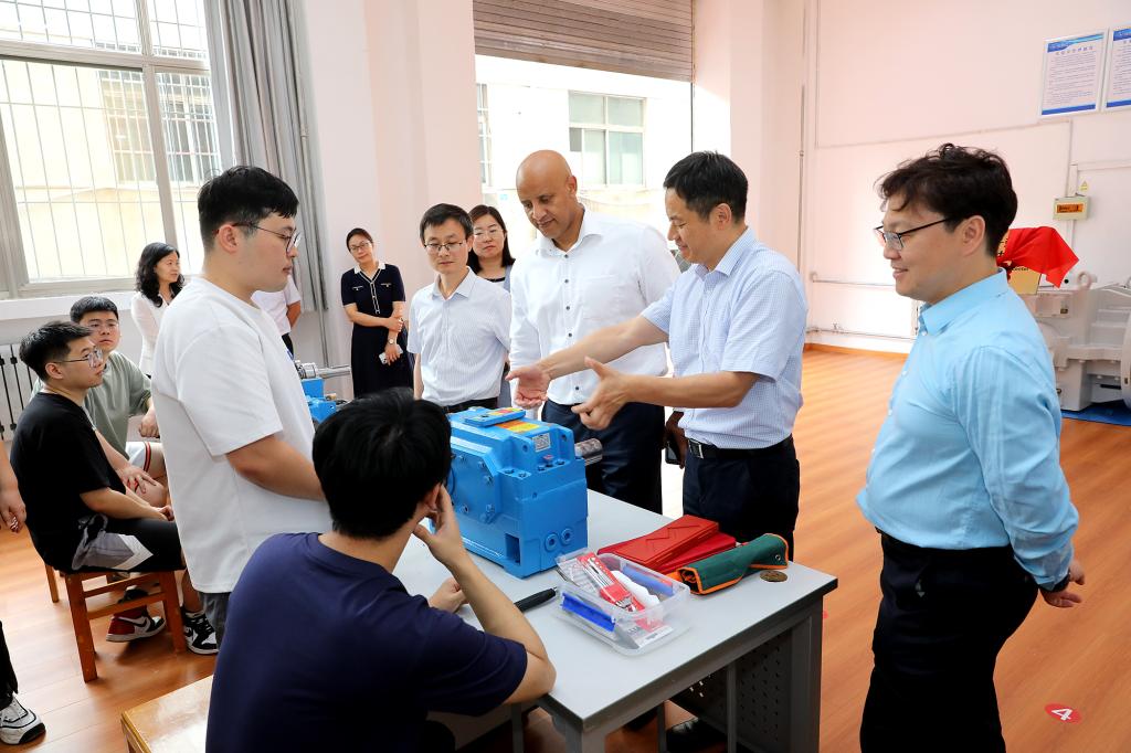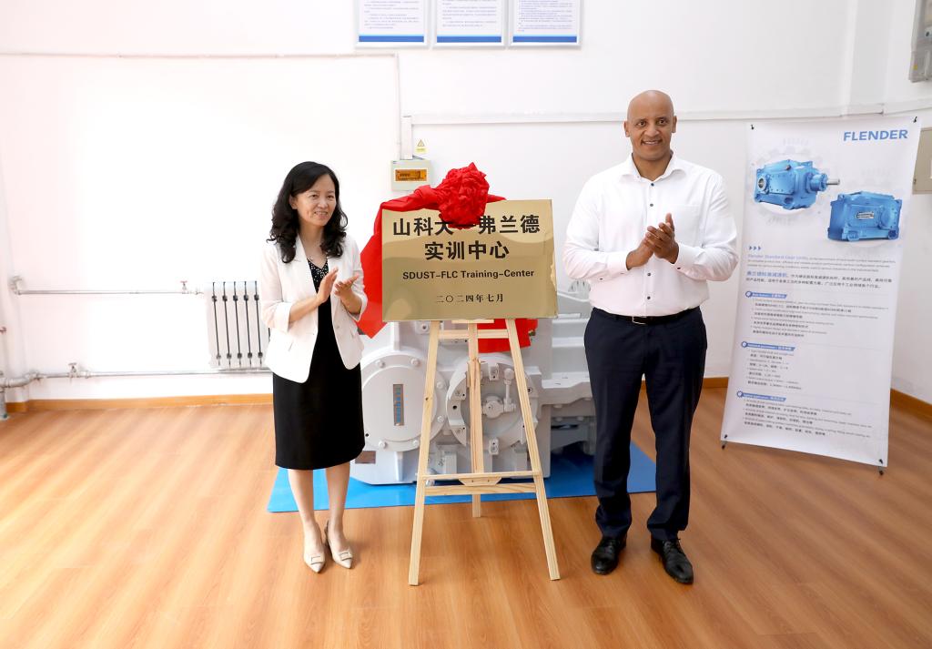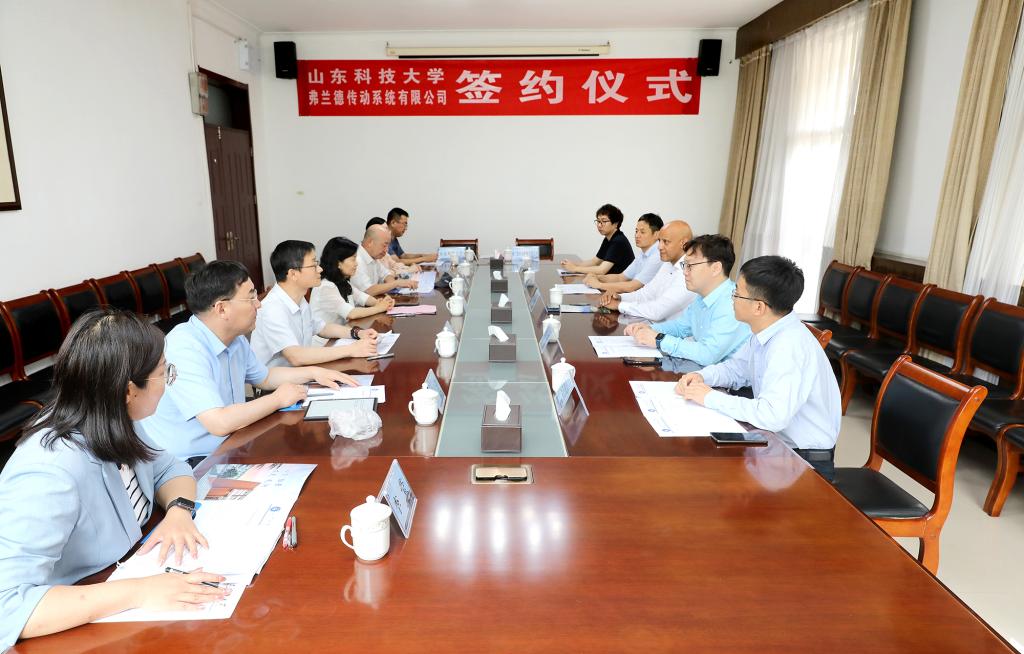签约仪式上,郭益灵、弗兰德传动系统有限公司中国研发总监万文铭代表双方签署合作协议,郭益灵与Mehari共同为“山科大—弗兰德实训中心”揭牌。仪式后,Mehari一行参观了教学模拟矿井和煤矿充填开采国家工程实验室。