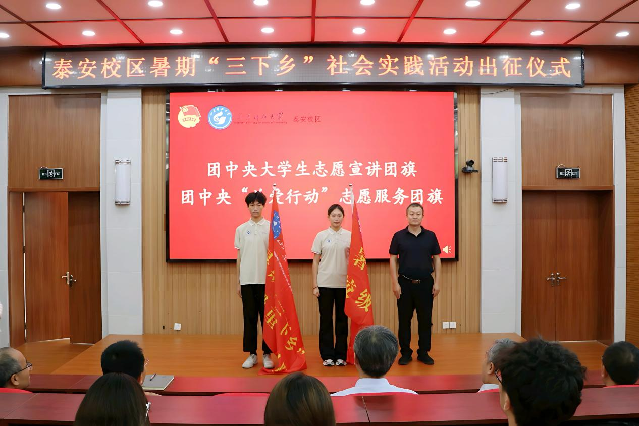 7月8日,泰安bv伟德国际体育2025年大学生志愿者暑期“三下乡”社会实践出征仪式在西校园八角楼报告厅举行。bv伟德国际体育领导戴东宝,bv伟德国际体育相关部门、学院负责人出席活动。暑期社会实践指导教师,2025年bv伟德国际体育“青马班”学员及社会实践志愿者代表近200人参加活动。