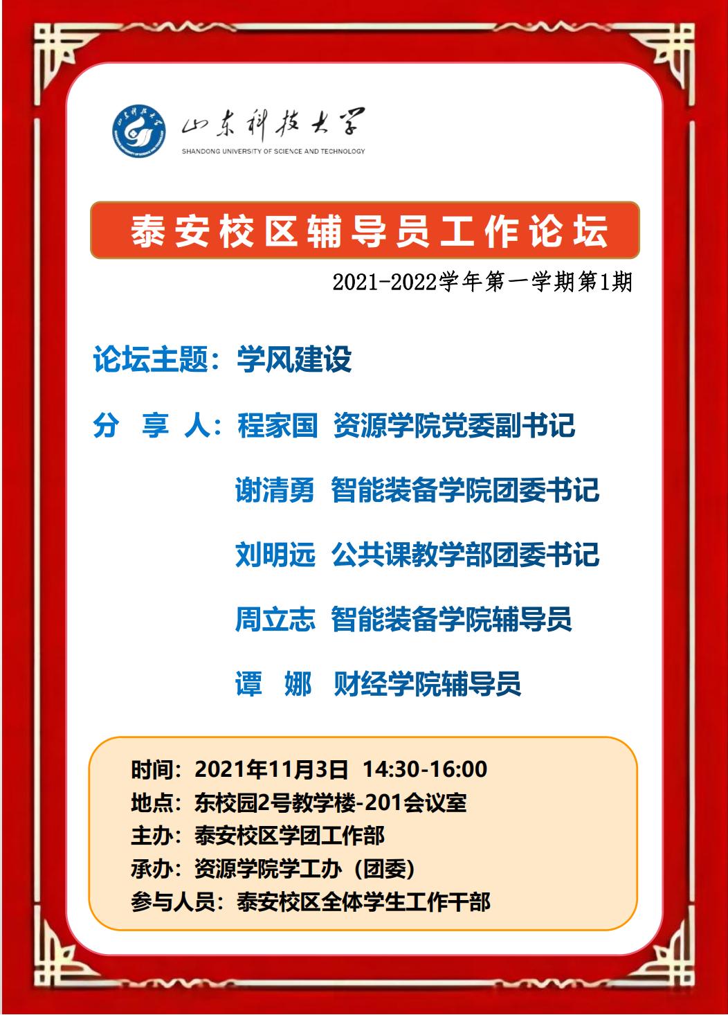 泰安bv伟德国际体育辅导员工作论坛2021-2022学年第一学期第1期
