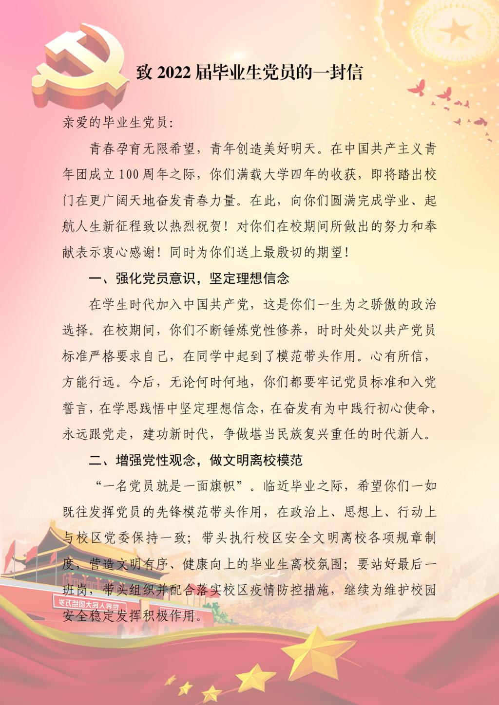 致2022届毕业生党员的一封信