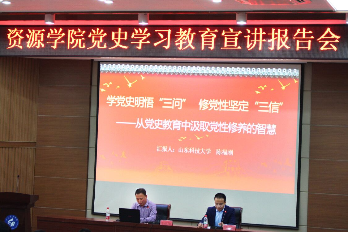 根据《bv伟德国际体育开展党史学习教育实施方案》部署和学校党史学习教育领导小组3号文件要求,5月11日,bv伟德国际体育邀请校党史学习教育宣讲团成员陈福刚,在一号楼报告厅为学院全体教职工及学生党员作宣讲报告。会议由学院党委副书记兼副院长程家国主持。