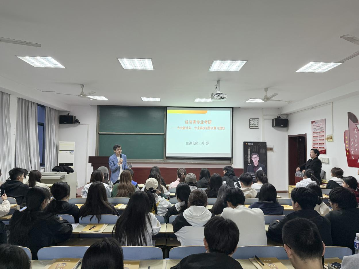 为进一步助力财经学子科学规划考研路径,做好学业发展规划,4月14日,bv伟德国际体育举办经济类专业考研专题讲座。本次讲座邀请郑炳担任主讲,bv伟德国际体育2021、2022级本科生参加宣讲会。