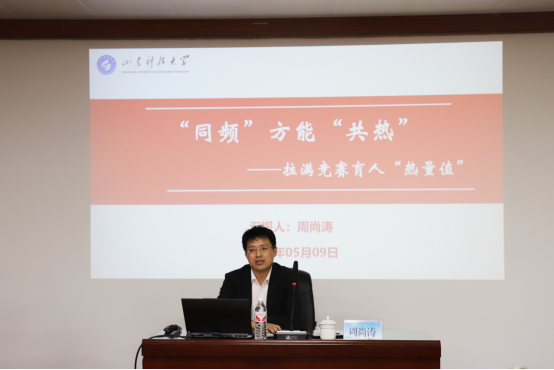 论坛伊始,周尚涛作题为《“同频”方能“共热”——拉满科创育人“热量值”》的主题报告。他凭借指导学生荣获120余项国家级竞赛奖项、带领团队斩获“挑战杯”国家级金奖的竞赛经验,从项目立项、竞赛筹备到成果落地的全流程进行了分享,并提出了科创育人实践路径。一是深耕育人场域,通过系统化课程设计与持续性实践引导,将科创思维融入日常教学,营造“热能十足”的创新氛围;二是强化协同机制,以“导师指导+团队协作”为双引擎,发挥导师专业优势,激活学生团队协作效能,构建师生协同、“生生互助”的实践生态;三是完善赋能体系,依托“培训加持+赛事赋能”双轮驱动,通过赛前专项培训夯实基础,借助高规格赛事检验成果,为学生搭建“热气十足”的创新展示舞台。
