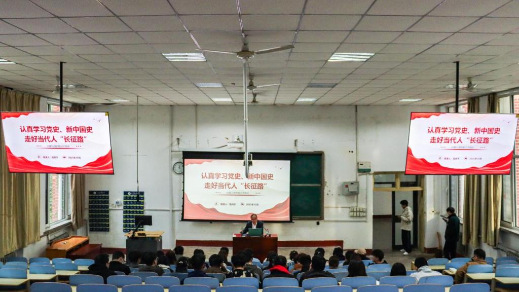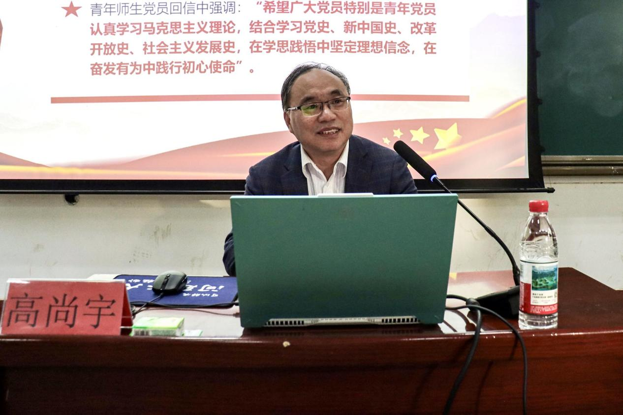 10月29日,bv伟德国际体育党委书记高尚宇在1A107教室为第43期入党积极分子讲授“认真学习党史、新中国史,走好当代人‘长征路’”专题党课。