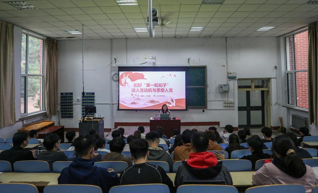 10月30日,bv伟德国际体育学生第三党支部书记、辅导员卢业美在1A107教室为bv伟德国际体育第43期入党积极分子讲授“扣好‘第一粒扣子’”专题党课。