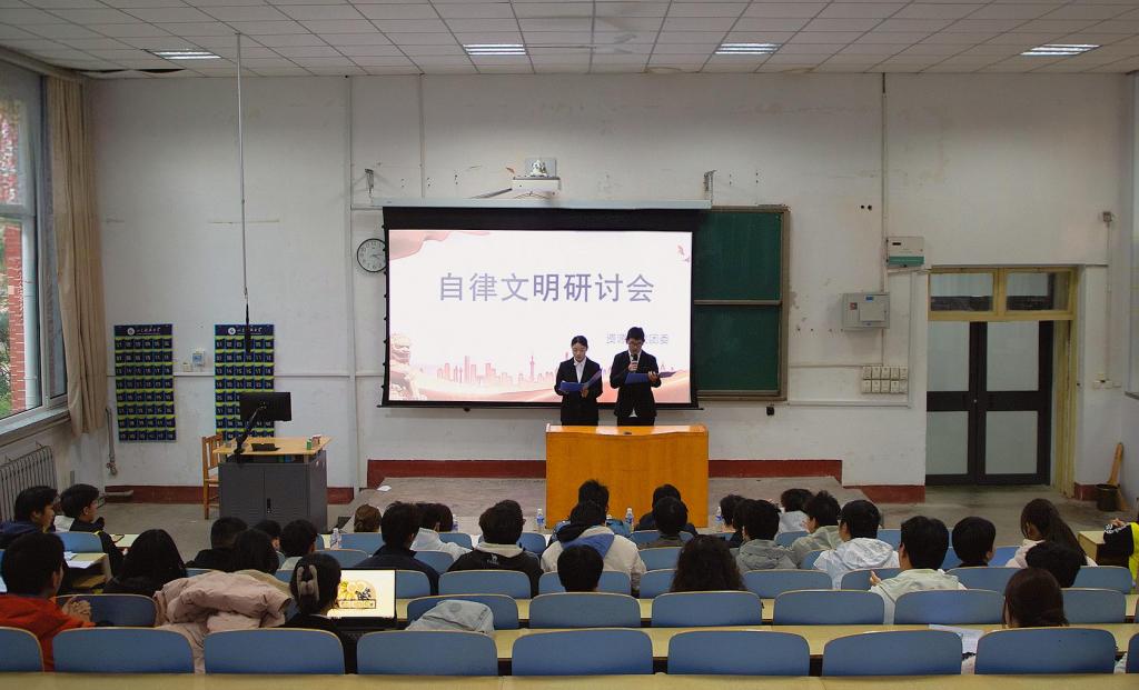 为强化学生自律意识,推动自律精神融入日常行为规范,11月14日,bv伟德国际体育在1A107教室举办第十届“泰山我敢当”自律·和谐系列活动之自律文明研讨会。学院2024级、2025级学生积极参加。