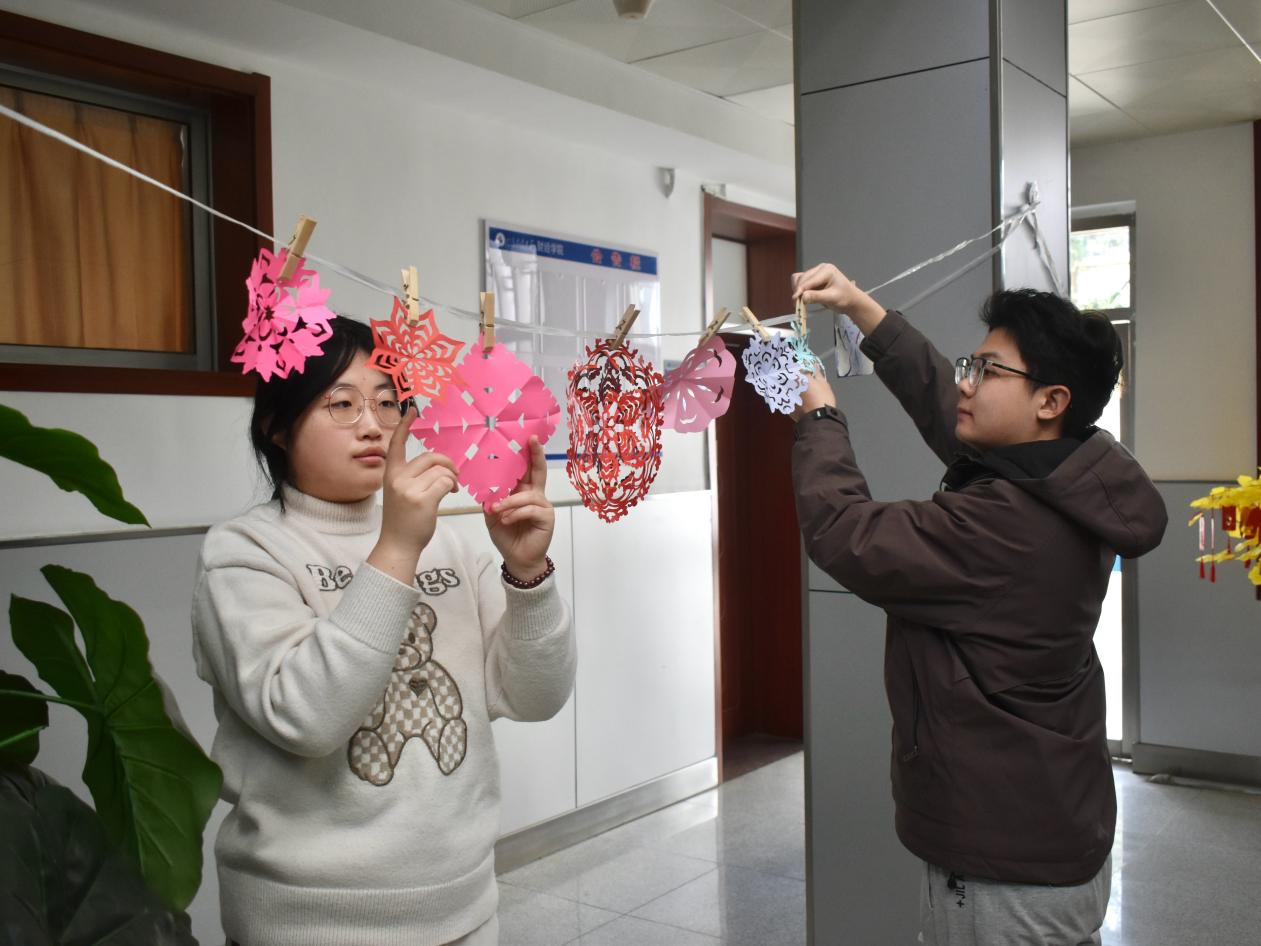 活动前,学院学生会精心筹备,整理优秀剪纸作品并布置现场,为同学们搭建起沉浸式的文化体验平台。活动现场氛围热烈融洽,同学们认真投入剪纸活动并驻足观赏展出的剪纸作品。这些作品题材丰富、构思精巧,既紧扣冬日主题,又蕴含浓厚的中国传统文化韵味,细腻的创作细节让同学们直观感受到剪纸艺术的匠心与美感,大家不时驻足赞叹、交流感悟。