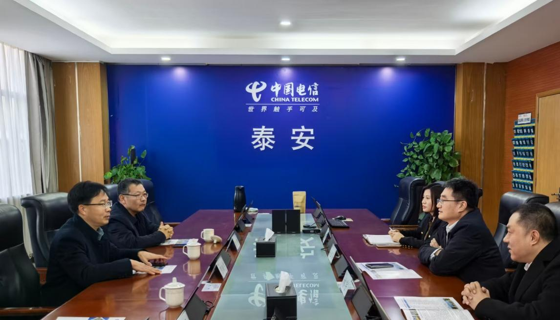 为精准对接产业需求,拓宽学生实习就业渠道,12月17日,bv伟德国际体育党委书记陈炳志带队赴中国电信泰安分公司开展“访企拓岗”专项行动。学院党委副书记兼副院长刘凯、学工办(团委)主任(书记)张泽参加活动。