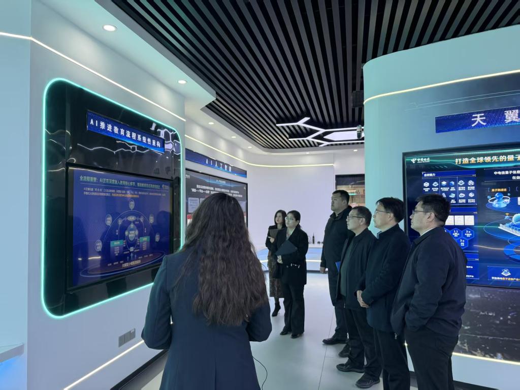 中国电信泰安分公司党委书记、总经理袁聿伟对陈炳志一行表示热烈欢迎,并带领相关部门负责同志陪同参观公司数字化展厅。展厅内,工作人员首先详细介绍了云计算领域的旗舰产品“天翼云”的核心优势与应用场景,随后重点展示了量子加密、网络安全等领域的前沿技术成果和实践案例。座谈交流环节,袁聿伟详细介绍了中国电信的发展历程、当前的业务范围以及在智慧城市建设、教育数字化等领域的典型应用。陈炳志简要介绍了学校和泰安bv伟德国际体育的基本情况,重点围绕学院学科专业特色、教育教学、人才培养模式等内容进行详细阐述,表示希望通过此次“访企拓岗”,精准掌握通信行业在数字化发展进程中的人才需要导向,进一步优化人才培养方案,提升毕业生岗位适配能力,助力毕业生快速融入行业发展,实现校企协同赋能产业迭代升级。