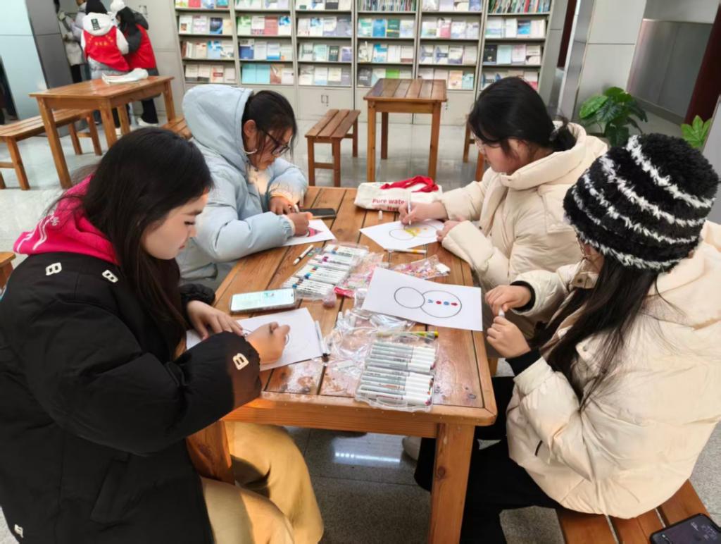 活动期间,同学们踊跃参与、潜心创作,现场氛围热烈而有序。同学们以校园雪景为蓝本,伏案勾勒、悉心着色,用细腻笔触定格冬日校园的静谧与灵动;有的同学专注于手工创作,通过拼贴、捏制等手法,将普通材料转化为形态各异的雪人、冰雕等冬日主题作品,尽显巧思与匠心;还有同学大胆融入潮流元素,将传统冬日意象与现代审美相结合,使作品兼具文化底蕴与时尚活力。同学们在创作中相互交流、彼此启发,专注的身影、热烈的研讨与阵阵赞许声交织相融,为凛冽冬日注入了温暖活力。