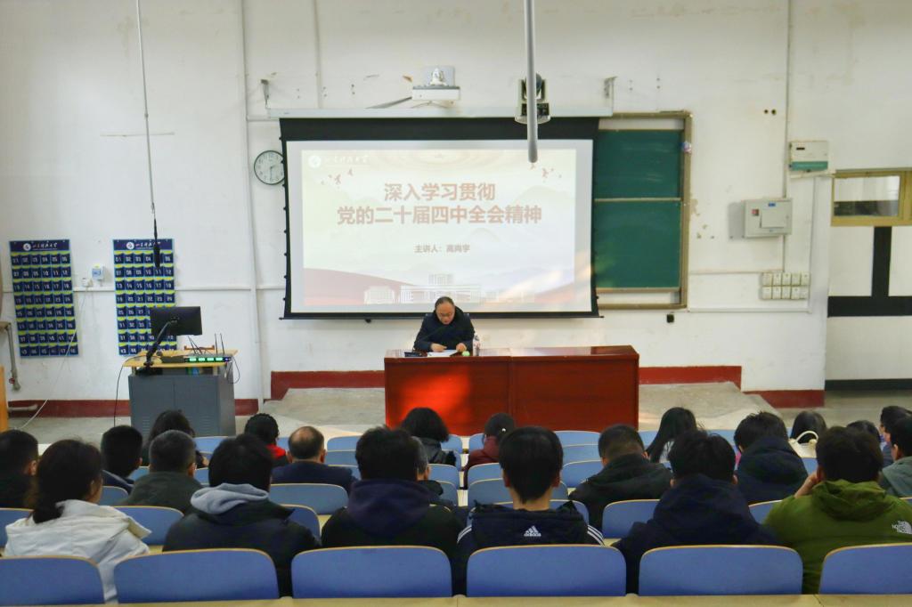 为深入学习贯彻党的二十届四中全会精神,推动全会精神进校园、进课堂,1月6日,bv伟德国际体育党委书记高尚宇在1A107教室为学院教职工和工程管理22-4班学生宣讲党的二十届四中全会精神。