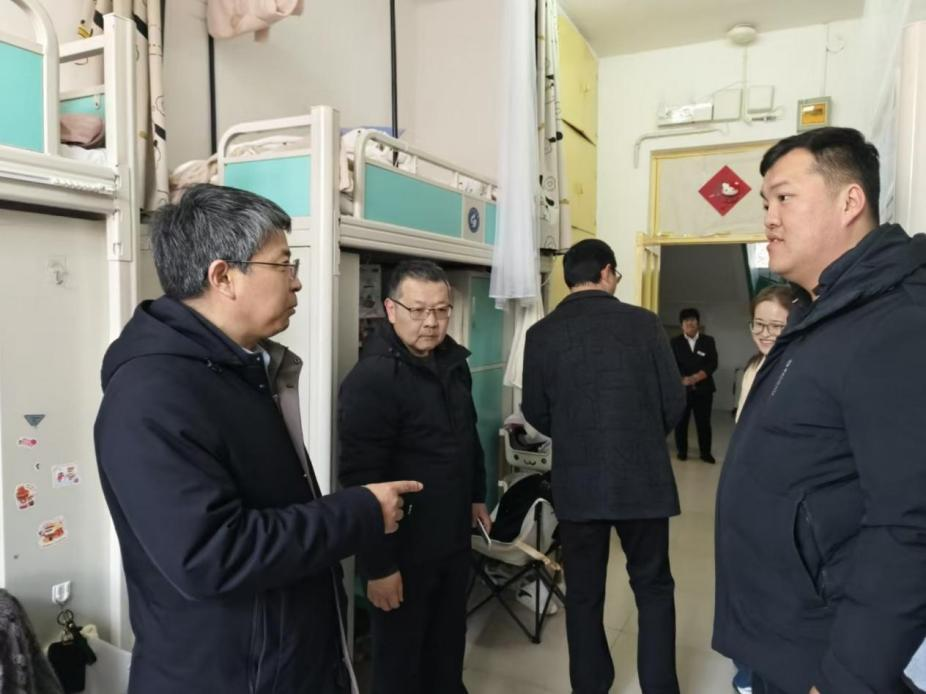 在学生宿舍区,学院领导实地查看宿舍卫生与安全环境,对同学们主动整理内务、营造整洁舒适居住空间的良好习惯给予肯定,同时强调要筑牢安全防线,共建文明和谐的宿舍氛围。