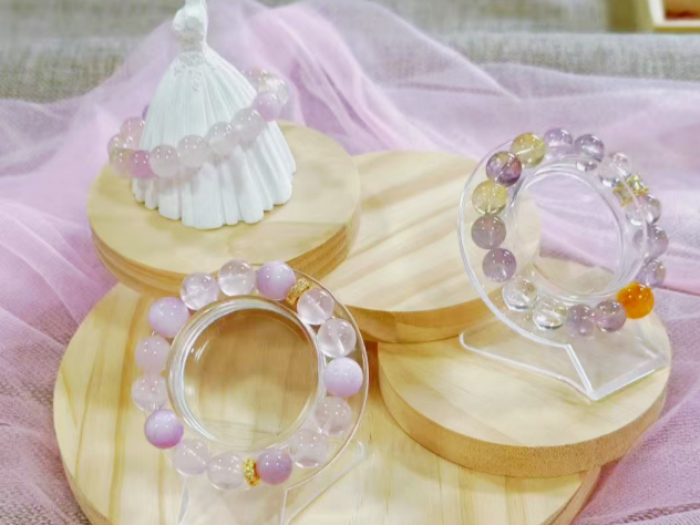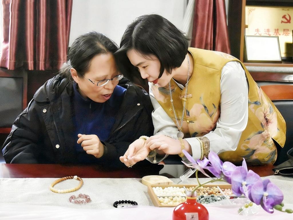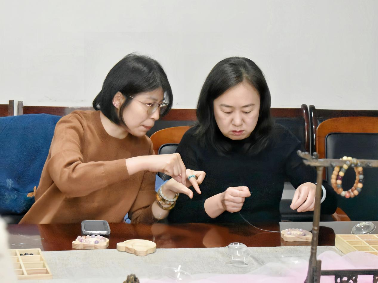 活动现场,专业讲解员细致讲解串珠技巧,示范操作步骤。大家认真聆听,纷纷投入创作,精心挑选心仪的水晶珠饰,搭配色彩与款式,穿线编结、调整细节。指尖流转间,一颗颗晶莹的珠子在巧手串联下,逐渐变成独具匠心的手链作品。大家一边制作一边交流,分享配色灵感与编织心得,现场气氛温馨融洽、笑语盈盈。经过两个多小时的精心创作,一串串风格各异、精美别致的水晶手链跃然腕间,每一件作品都承载着创作者的美好期许与独特心意。