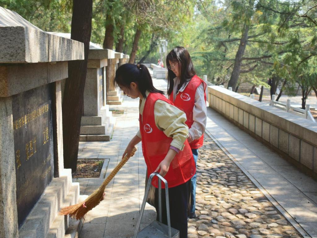 活动期间,泰安革命烈士陵园管理服务中心负责人为同学们作专题宣讲,深情讲述泰安地区革命先辈浴血奋战、舍生取义的英雄事迹。志愿者们认真聆听,深刻感悟先烈们的崇高理想与家国情怀。随后,志愿者们分组行动,手持清洁工具擦拭烈士墓碑、清理陵园落叶杂草,以实际行动维护陵园的整洁庄严。