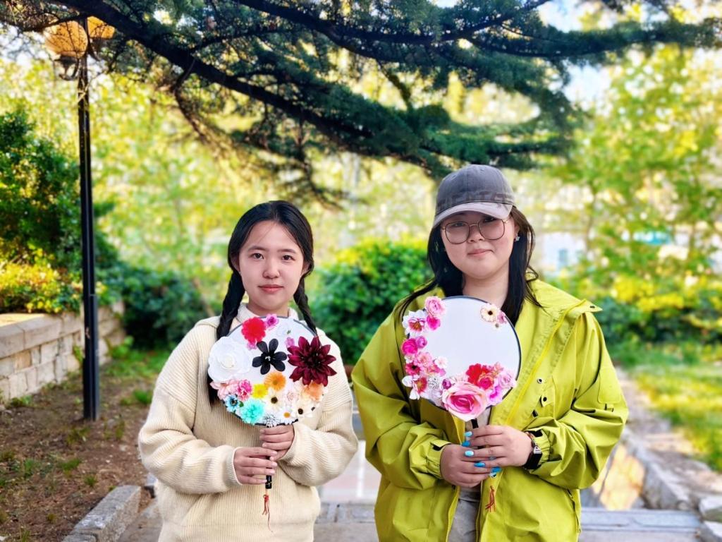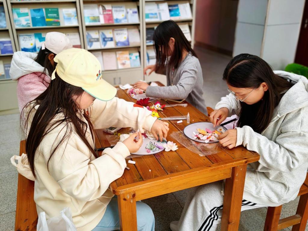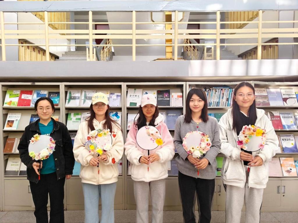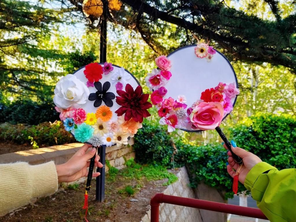 活动现场,空白团扇、干花、颜料等材料一应俱全。同学们围坐桌前,神情专注愉悦,或精心布局粘贴干花,或提笔勾勒春日景致,将烂漫春光与个人巧思融入扇面。大家互相交流创意、分享技巧,在慢时光里专注创作,让素净扇面蜕变为一把把独一无二、雅致灵动的专属作品,尽显青春创意与传统文化的碰撞融合。
