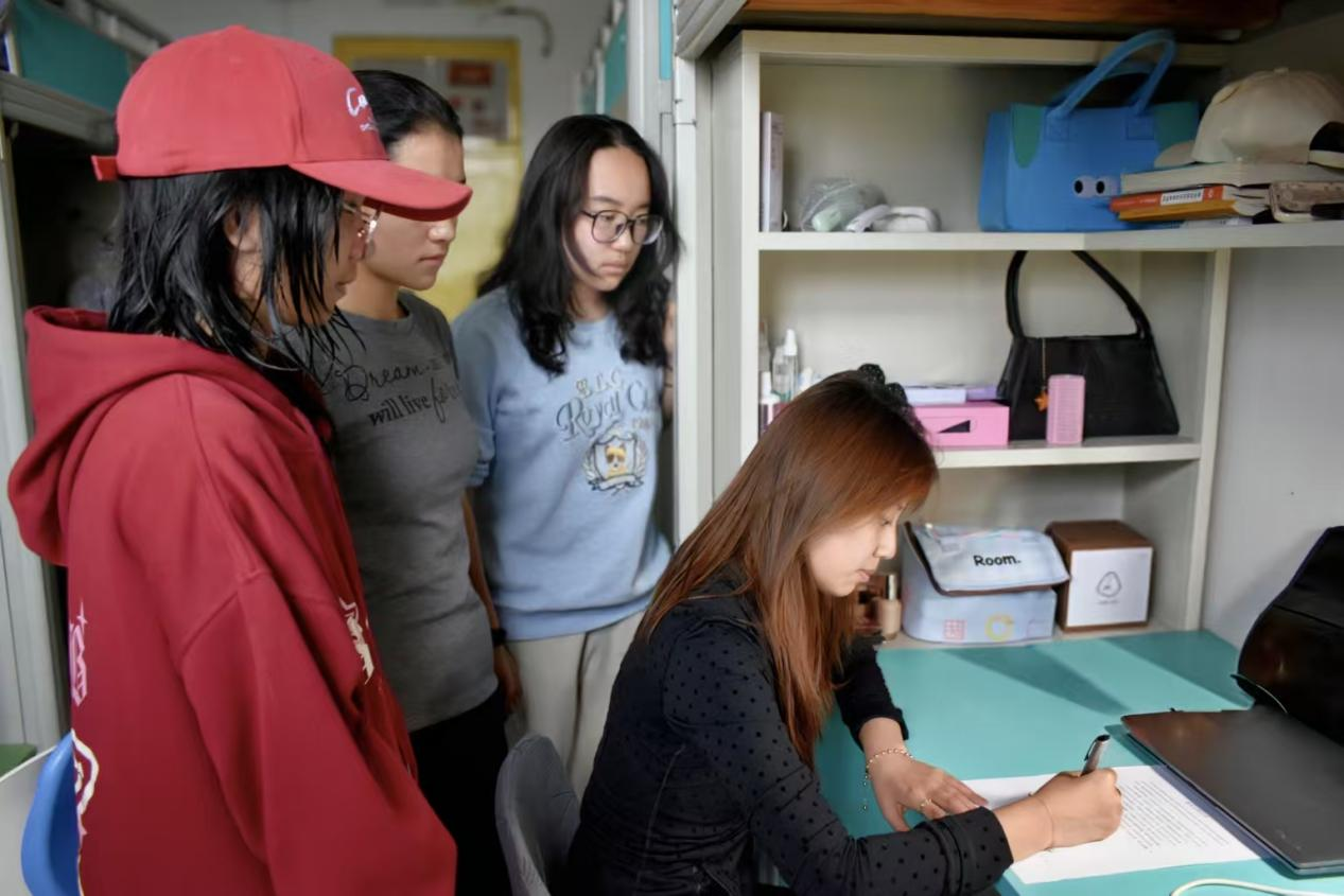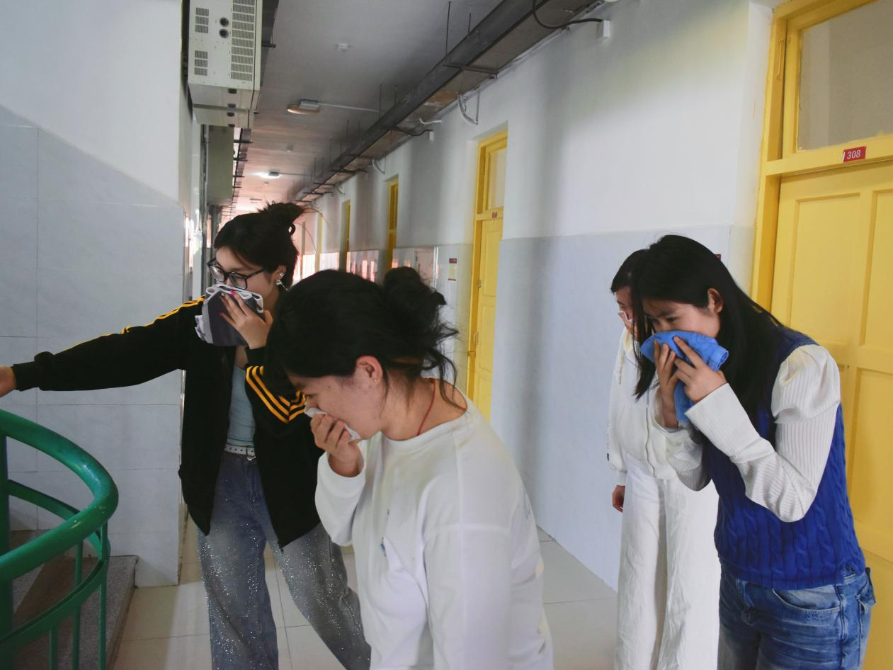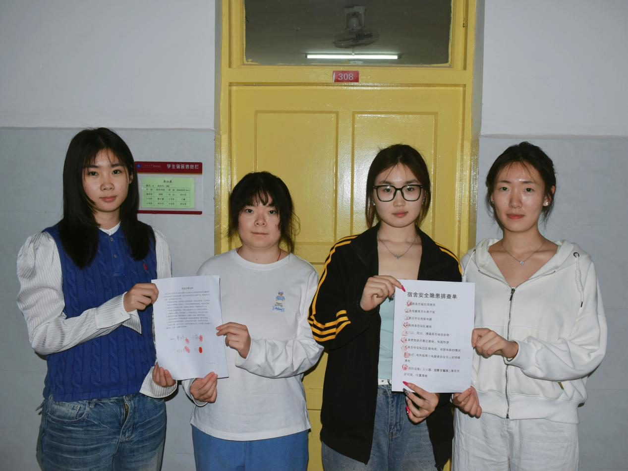 活动设置三大沉浸式环节,让安全知识可感可学。“安全隐患我来找”中,同学们化身“安全侦察员”,对照排查单细致查验用电规范、通道畅通、物品摆放等情况,从源头排查风险;“突发情况我会做”围绕宿舍火情开展情景模拟,师生现场演示冷静处置、低姿撤离、及时上报等流程,精准掌握应急要点;“安全问题我来答”以趣味抢答巩固防火、防盗、防诈骗等知识,在互动比拼中深化安全认知。活动最后,各宿舍共同签署《宿舍安全公约》,作出安全承诺,将责任内化于心、外化于行。