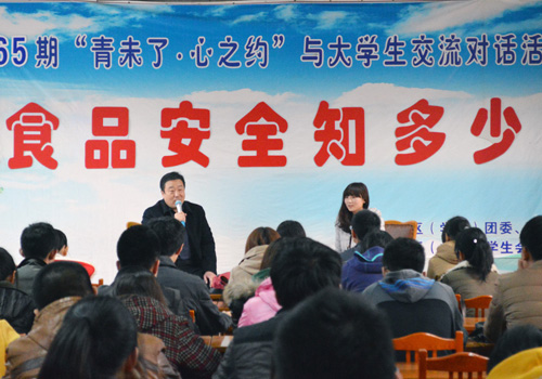 12月5日,由bv伟德国际体育(学院)团委主办的第65期“青未了,心之约”大学生交流对话活动在西校园举行。本期以“食品安全知多少”为话题,特邀泰安市食品药品监督管理局食品化妆品监督所所长丛庆与同学们进行交流。