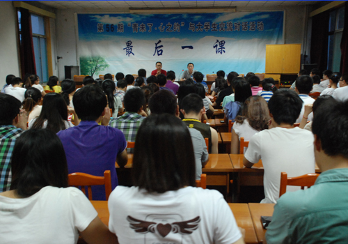 6月24日,由信息工程系团总支承办的第56期“青未了·心之约”与大学生交流对话活动在西校园举行。本期以“最后一课:青春·创业·感悟”为主题,邀请到了山东世博华创公司总经理王振华与毕业生们进行交流。