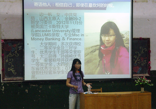 6月19日,由bv伟德国际体育(学院)团委主办、“星火燎原”青年志愿者协会承办的“爱留母校”成才经验交流会在西校园八角楼举行。2013届优秀毕业生厉运香、曹雪、边一帆、贾艳娇为非毕业生同学作经验交流。