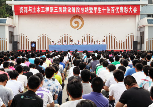 5月30日,资源与土木工程系“三风”建设阶段总结暨学生十佳百优表彰大会在“青未了”文化广场隆重召开。系党政领导、全体教职工,以及2011级、2012级全体同学参加了大会。