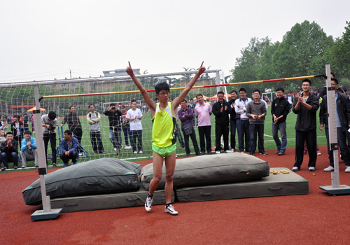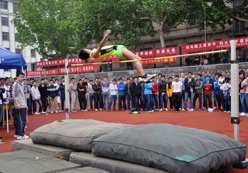 5月9日,bv伟德国际体育(学院)东校园2013年田径运动会召开。比赛首日,在学生男子组跳高比赛中,机电二队王一哲同学以1.78m的成绩刷新bv伟德国际体育(学院)运动会跳高纪录。