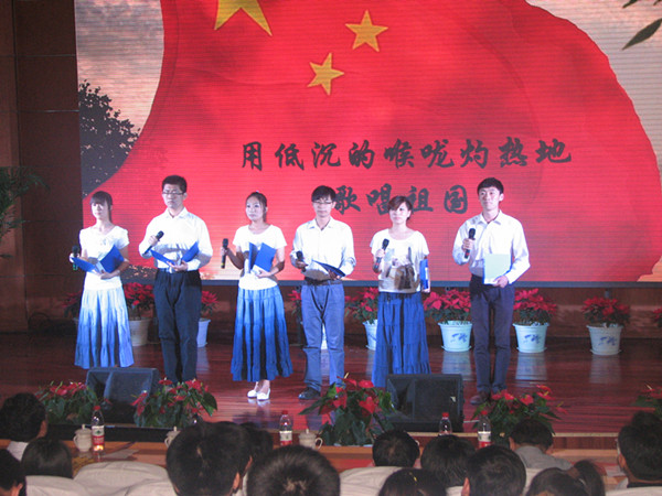 活动分为“七彩花海”、“闪光团徽”、“浓荫杏坛”、“荣耀中国”四个篇章。参赛选手既有小学生,又有高校的教职工,还有电视台的专业记者。我校的节目《祖国啊祖国》属于第四篇章“荣耀中国”。随着画面慢慢清晰,背景音乐缓缓响起,文法学子以新颖的出场方式两两走入人们的视线,六位选手用富有磁力的声音融入了诗歌,渐渐的陶醉在诗歌的激情之中,用自己的心感受祖国的伟大,声音响彻礼堂,铿锵有力,引来现场观众阵阵掌声,观众们似乎也随着音乐进入了诗海之中。(文:董芳 孟鑫 摄影:王娟 编辑:李亚宁)
