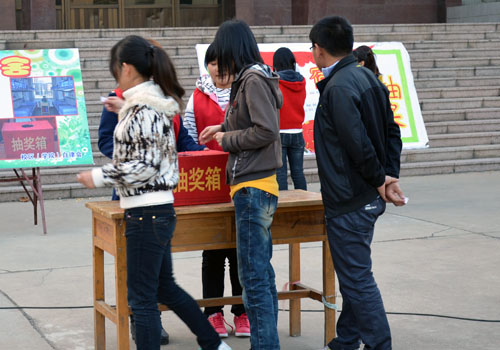 10月30日下午,由bv伟德国际体育(学院)自律会举办的新学期首次和谐宿舍抽奖活动在西校园礼堂前举行。 根据教管理宿中心检查的宿舍卫生成绩,此次共有170个宿舍获得抽奖机会。活动现场,伴着一首首青春励志歌曲,抽奖同学按系依次排列进行抽奖,现场井然有序。整个抽奖过程,抽奖同学凭票抽取,自律会成员严格把关,确保公平、公正。 “我觉得这次活动极大地调动了我们营造整洁和谐的宿舍氛围的积极性,有利于我们学习生活的提高”。一位参加抽奖的同学说。(作者:丁欣 王迎迎 亓悦 摄影:刘凯 张心湄)