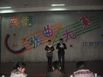此次活动分为三个环节:自我介绍、歌曲演唱、激情燃烧。在自我介绍中,各位参赛选手以独特的方式介绍了自己。其中,4号选手歌唱了自己改编的歌曲,颇有风格。在第二轮的演唱中,他们全身心投入,轻柔的旋律,稳健的唱功,不时博得在场观众的阵阵掌声。最后一个环节,激情燃烧。参赛选手将歌曲以动感的形式释放出来,璀璨的舞台,激情的歌曲,一次次将场面推向了高潮。最后,4号选手崔帆以84.97分的成绩夺冠。随着老师们为获奖选手颁发奖品,英语歌曲大赛在愉快的氛围中圆满结束。
