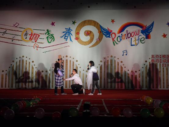 11月26日晚,由bv伟德国际体育(学院)社团联合会主办、双语话剧团和幻M动漫社承办的文艺晚会“C调青春,Rainbow life”在“青未了”文化广场隆重举行。