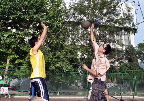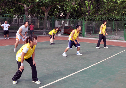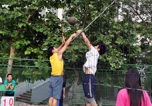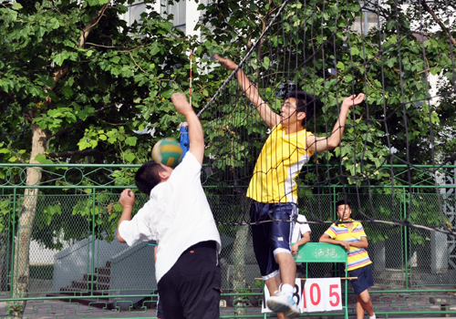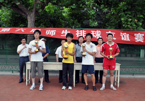 在半决赛中,由洒艳老师率领的代表队和张裴老师率领的代表队均直落两盘分别战胜由韩子玉老师率领的代表队和韩威老师率领的代表队,顺利晋级决赛。决赛中,由洒艳老师带领的代表队以25:21的比分率先拿下一局,两队精彩的扣杀,积极的救球,不时博得同学们的阵阵掌声。由张裴老师带领的代表队也不甘落后,利用对方的频频失误,以25:22的比分扳回一局。进入决胜局,双方你来我往,始终把比分紧咬着,由于比赛激烈,双方的体力也消耗殆尽。最终,经过激烈角逐,由洒艳率领的代表队以15:12的比分战胜对手,从而以总比分2:1夺得比赛冠军。
