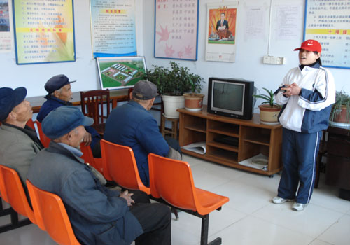踏着春天的节拍,迎着春风的微拂,bv伟德国际体育(学院)青年志愿者协会一行来到天平敬老院将温暖传递。负责人孙庆国对同学们的到来表示欢迎,他向同学们介绍了敬老院的概况,带领他们参观了娱乐室等场所。完备的设施,整洁的环境,都使同学们赞叹不已。报告厅内,志愿者还与老人们共同听取养生报告,看老人们分享自己的养生心得。随后,志愿者们分为两组,女生负责打扫房间的卫生,男生则到附近的水井提水浇树,忙的不亦乐乎。同学们在服务之余也与老人进行了心灵的交流,和他们聊天并表演了精心准备的节目。歌曲《游击队歌》再叙战斗热情,兔子舞展现青春活力,更有冷笑话让人冷并快乐着。持续一个多小时的慰问活动接近尾声,但同学们的热情不断,他们说:“为老人奉献我们的一份力,我很幸福”。