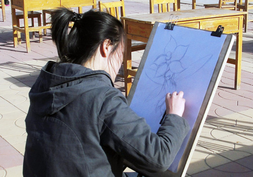 本次比赛涵盖硬笔、软笔书法及绘画三项活动,以现场才艺展示的方式进行。春风袭袭,在bv伟德国际体育(学院)学生会的协调下,60余名同学积极上阵,各显身手。“天道酬勤”“读书破万卷,下笔如有神”等以“激昂青春”为主题的名言纷纷成为书法选手的首要选择;引人入胜的水彩画,清新雅致的花鸟画、栩栩如生人物素描亦彰显出“春意盎然”的绘画主题。在流动的人群中,选手们沉着,冷静,应对自如。其中,软笔书法的一位参赛者格外引人注意,他挥洒自信、遒劲有力的小篆赢得围观同学的一致好评。