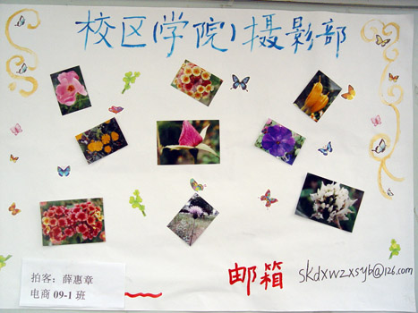 据工作人员介绍,此次摄影展活动旨在进一步丰富校园文化,从全新角度向同学们展示集“美丽”“才华”“青春”于一体的新一代大学生的风采。作品征集期间,为鼓励更多同学参与其中,工作人员通过展板、书面通知等形式进行广泛宣传。随后,一份份优秀的作品陆续呈上,其中,绚烂多姿的花景照显露出植物生命的生机与活力,清新自然的山水照映射出大自然的靓丽清纯,温馨的大学生活照则展示出同学们充满情趣的校园生活的点滴……此外,该次活动在沿袭往年传统的同时,精心策划了院刊、宣传栏等独特的照片展出形式。工作人员还鼓励照片作者与观看者积极交流,相互学习借鉴,以进一步提高摄影水平。