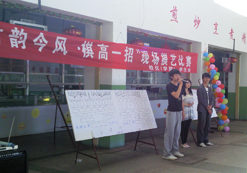 琴棋书画作为中华文化的奇葩,带着芬芳走进校园,继“笔精墨妙”书画大赛之后,“棋高一招”棋艺比赛也顺利开赛。本次比赛分为五子棋、跳棋、中国象棋三组,各组选手两两对决,逐轮淘汰,直至冠军产生。比赛一开始,选手们就进入了各自棋盘的拼杀中,展开智力和技巧的比拼。随着战况越加激烈,气氛逐渐变得紧张。选手们严谨对待,步步为营,或凝眉深思,或果断出棋,小小的棋盘上进行着精彩的厮杀。一位选手感叹:“当下棋变成一种竞技,就变成对思维的考验。”跳棋和五子棋组的比赛率先结束,高超和马晓明分别夺冠。象棋组中,楚河汉界的对弈尤为激烈,吸引众多同学驻足,观众们静观最后的搏杀,最终,汪帅棋高一招,夺得桂冠。