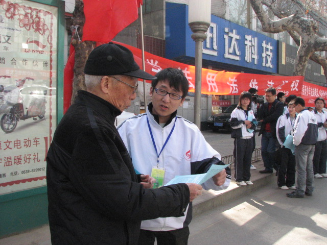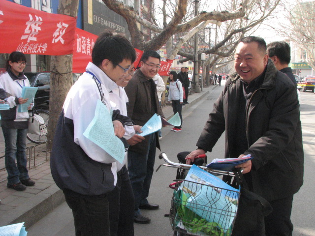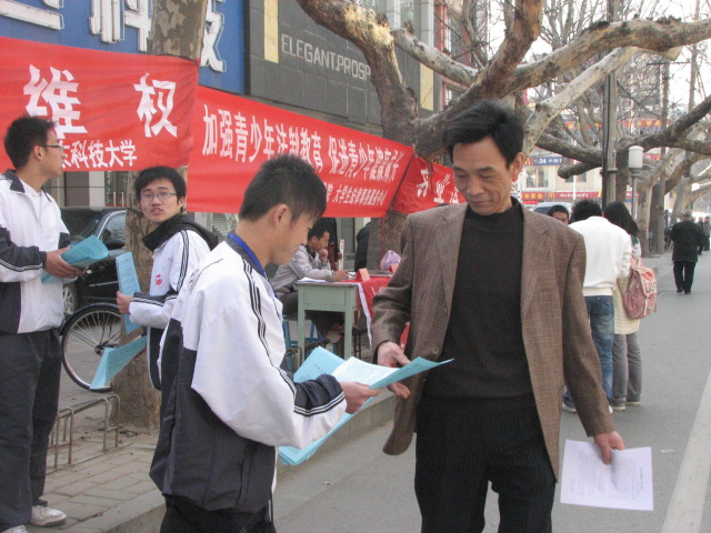 春风送暖,百花盛开,4月2日上午,响应泰安市政府的号召,科大师生一行16人,来到市青年路开展了普法宣传活动。