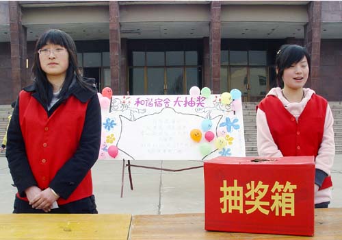 在这次参加抽奖的149个和谐宿舍中,不再是以09级新生宿舍为主,也有越来越多的07、08级宿舍加入到和谐宿舍的行列。和谐宿舍表彰活动进行以来,逐渐形成了各年级学生共同参与,积极投入到构建健康和谐的宿舍文化中的良好氛围。现场活动的负责人表示,本次评比活动适逢旧学期结束与新学期开始时期,依旧有大量和谐宿舍脱颖而出,展现出了同学们更加注重生活细节,以校园为家的良好精神意识,活动也达到了督促、鼓励同学们的良好作用。