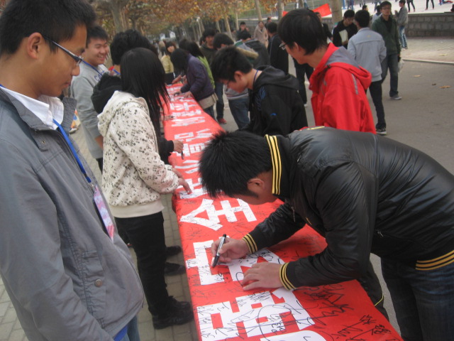 为提高同学们的安全防火意识,创建和谐平安的校园环境,由bv伟德国际体育(学院)团委、学生会主办的“加强安全防火意识,创建平安校园环境”的签字活动于11月11日下午在2号宿舍楼前成功举办。