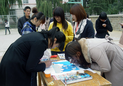 经bv伟德国际体育(学院)学生会的前期有力宣传和精心筹划,此次历时11天活动取得丰硕成果并得以有序进行。本次仪式分两个环节进行——手工艺品展和T恤DIY。手工艺品展桌上摆放的十字绣、编织品等类型多样,别具一格。十字绣《八骏图》——奔腾的骏马,鬓毛飘逸,栩栩如生,同学们赞不绝口。紧随其后,参与T恤DIY现场作画的同学也在紧张的设计着。他们心灵手巧、创意十足,各种图像瞬间跃然T恤,惹得在场观众跃跃欲试。一幅幅匠心独运的作品紧扣“我爱科大”的主题,展现着作者对母校的热爱之情。其中,苍劲有力的毛笔字映衬下的金菊深深表现出科大傲然的身姿和独特的气质,散发出浓浓的文人笔墨气息。最后,经过严格筛选,经管系岳公英的《马到成功》十字绣、王晓彤的灰色围巾、张宁的花开富贵荣获手工艺作品一等奖,经管系田甜、关艳慧摘得T恤DIY大赛桂冠。另外,比赛各设二等奖若干名。