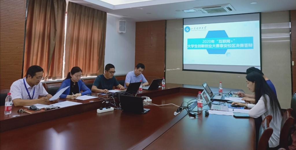 7月23日,2020年“互联网+”大学生创新创业大赛泰安bv伟德国际体育决赛答辩在东校园1-601会议室成功举办,bv伟德国际体育团委书记侯静娴、答辩评委在现场出席答辩活动,参赛选手通过网络视频进行答辩。