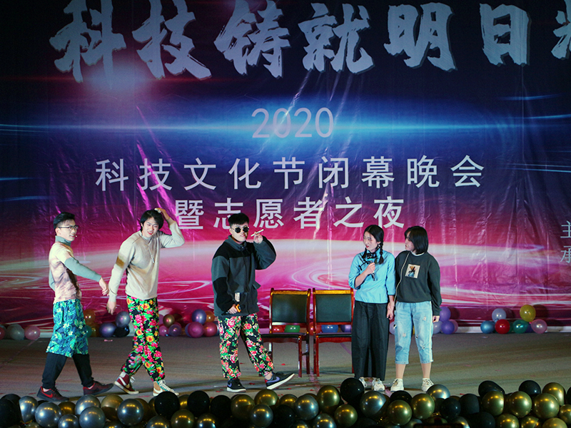 舞蹈,流畅的节拍诠释澎湃的动力;歌曲,跳跃的音符绘出青春的激情;走秀,坚定的步伐秀出嵙嵙的朝气,载歌载舞,灯光掌声,这便是科技文化节闭幕式暨志愿者之夜的晚会现场。此次晚会在歌舞之外还有各式特色节目,其中,情景剧《你好,李焕英》在带给大家欢笑的同时告诫同学们珍惜时光,勿要树欲静而风不止,子欲养而亲不待。选择自己的路,即使它足迹稀疏,即使它落叶满地。小品《我的路》在幽默风趣中讲述“选择”的重要性,给予同学们人生启迪。朗诵《祖国啊,我亲爱的祖国》同学们铿锵有力、掷地有声,诵出嵙嵙的风貌:朝气蓬勃、一往无前,晚会完美收尾。