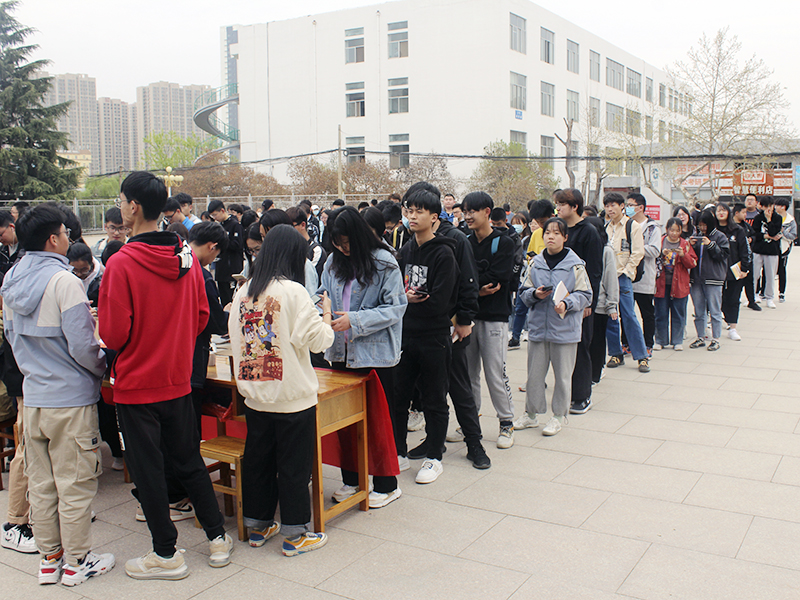 排长队依次等待领取的同学们
