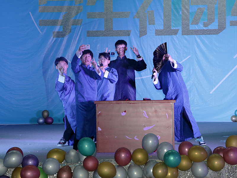 晚会在激情飞扬的舞蹈《a theme to the last days》中拉开了序幕,点燃了现场的氛围。演出节目内容丰富,形式多样,融歌曲、舞蹈、相声、小品、话剧等多种表演于一体。晚会开始前,礼堂座无虚席。其中小品《要爱,不要伤害》别具一格、匠心独运,演员幽默搞笑的演绎使全场观众掌声雷动,喝彩欢呼声不绝如缕。舞蹈《惊鸿一面》舞姿轻灵,身轻似燕,身体软如云絮,双臂柔若无骨,步步生莲般地舞姿,如花间飞舞的蝴蝶,如潺潺的流水,让人醉得无法自抑。刚健的跆拳道表演《跆风》展示的一招一式,一脚一拳都彰显了气势,掌声欢呼声不绝于耳。合唱《渴望光荣》告诉我们日月星辰是我们自强不息的笑容,苍穹大地是我们厚德载物的胸膛,绽放生命、愿光荣与梦想一起翱翔,晚会完美落幕。