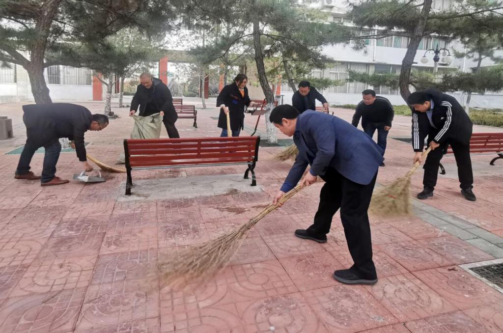 各党小组分别在校园的多个地方进行了志愿服务。大家自带工具,分工配合,美化环境,尤其对部分垃圾死角的杂物、枯枝树叶、塑料袋等进行了处理;对个别地方堆积的建筑垃圾通过分装在多个编织袋的方式也逐步进行了清理,使校园环境更加美丽。