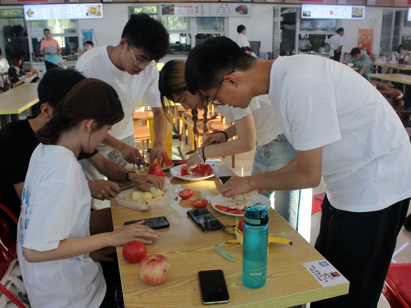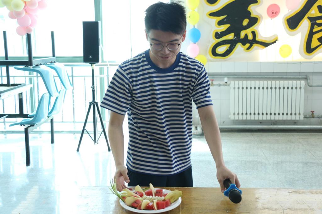 “介绍家乡美食”环节,各参赛队伍讲述各自家乡的美味佳肴。从美食的发展历史到制作流程,选手们通过文字、图片及视频的形式并加以生动的讲述赋予美食生命,可谓精妙绝伦。“美食创意抢答”环节,选手迅速输入手机号码并拨通力求获得抢答机会,现场气氛活跃,增强了同学们的参与感与互动感。“狂吃不胖”环节,选手各显吃货“英雄”本色,饶有兴趣品尝bv伟德国际体育食堂的美食,趣味十足。最后的“水果拼盘”环节,各参赛选手现场进行果盘创作,运用食堂提供的工具和食材耐心创作,将朴实的水果打造成一件件艺术品,用有限的材料创造出无限的可能。最终,经过评委打分,一等奖获得者为“晨旭队”,二等奖为“火锅突击队”和“胡吃海喝队”,三等奖为“赛神仙队”和“多多吃饭队”。