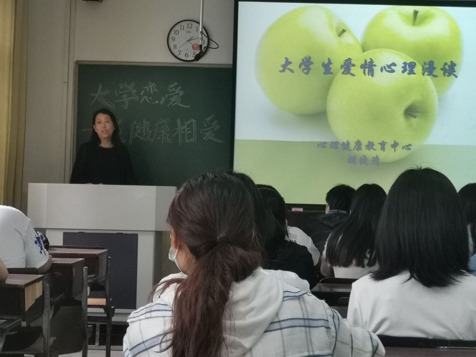 胡晓清老师的讲座主题是大学生恋爱心理,她从与爱情有关的诗词电影引入,启发同学们了解爱情的内涵、恋爱的类型、我们为什么相爱、男女心理差异、怎样去相爱等等。她深入浅出地引导同学们从生理和心理两个层面去正确看待大学生的恋爱,让同学们明白大学恋爱有利有弊,爱情需要情商、需要表达沟通,面对爱情要理智地把握恋爱的分寸和距离,正确的建立和处理两性关系,树立正确的恋爱观念。