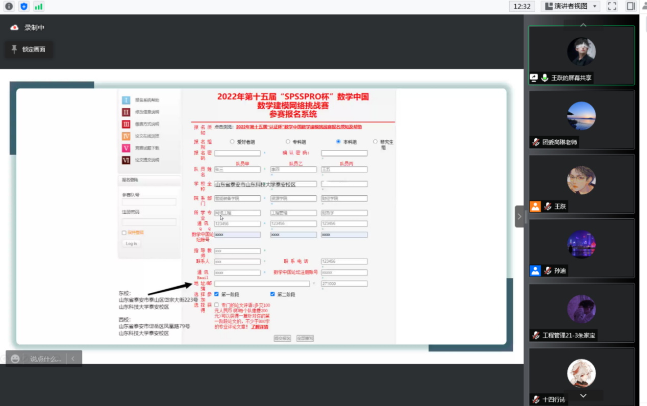 本次培训共吸引140余人参加。王跃同学介绍了数学建模相关流程、报名方式,分享并演示“SPSSPRO”数据分析等软件;高睿诚同学立足自身分享参赛经验,对数模竞赛的常见类目、题型以及常用方法做了讲解、演示和总结;孙迪同学介绍了建模比赛的组队与分工协作、文献查阅和论文排版;高琳老师介绍了bv伟德国际体育往年获奖情况,提醒参赛同学仔细阅读和严格执行参赛规章,结合实例进行了学术规范和学术道德教育。