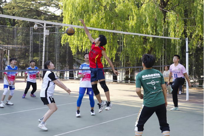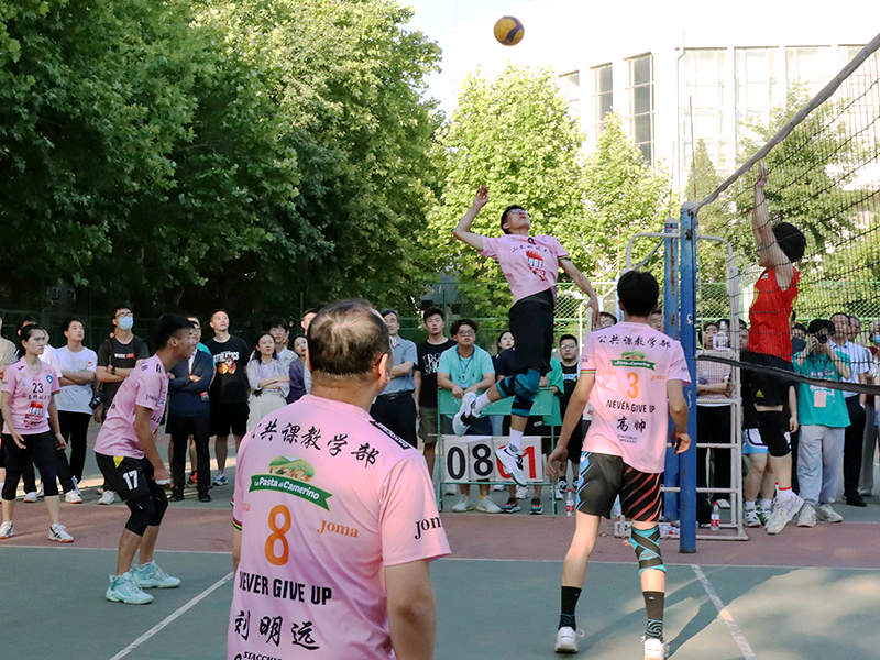经过近两周的激烈比拼,决赛由四名老师带领的队伍参加,比赛伊始,排球赛场上就爆发出强烈的胜负欲,双方队员士气高涨,发球精准,接球稳重,扣球有力,队员之间配合默契,强攻、快攻、后排攻表现十分出色,强有力的扣球,帅气的拦网更是博得观众阵阵喝彩。队员防守技术好,⼆传配合精妙,快球隐蔽性强,背飞背快、短平快、时间差等战术球的突破让观众叫好不绝。公共课教学部排球队多次发挥拦网优势,抵挡了bv伟德国际体育排球队的猛烈进攻,以3:1的成绩成功拿下冠军。赛场上,队员和观众的呐喊声、欢呼声,高潮迭起,扣人心弦。